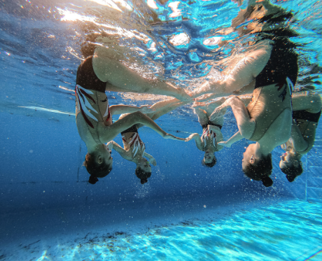 You might know synchronized swimming as the sport where girls with flower caps dive sideways into a pool, but the sport that I competed in was much more intense. Routines are between 2 and 4 minutes of pure sprinting, while spending half of the time upside down. As well as holding your breath while your legs make beautiful positions, perfectly in time with your teammates and the music. The other half of the time is spent treading water as hard as you can with your chest and arms out of the water, while trying to not let anyone know how hard you are working under the surface. Often, we connected to each other to make patterns in the water. Sometimes, we even threw girls into the air to do flips before hitting the water again. And we did all of this without ever touching the bottom of the pool.